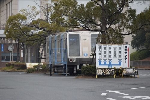 ※2019年2月、4月撮影 横浜市営地下鉄1000形1041号 地下鉄ブルーラインの初代車両、1000形の第4編成の先頭車です。 横浜市金沢区にある「横浜市資源循環局金沢工場」にストックヤードとして置かれています。 煙突と 清掃工場の入り口の上に歩道橋があり、そこ…