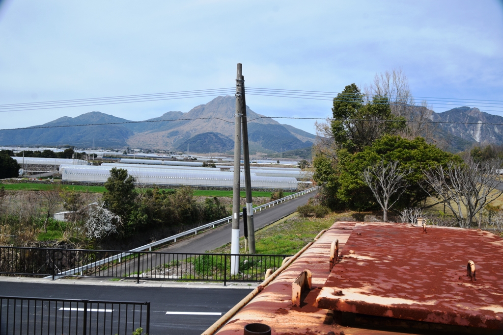 運転台から雲仙普賢岳を望む