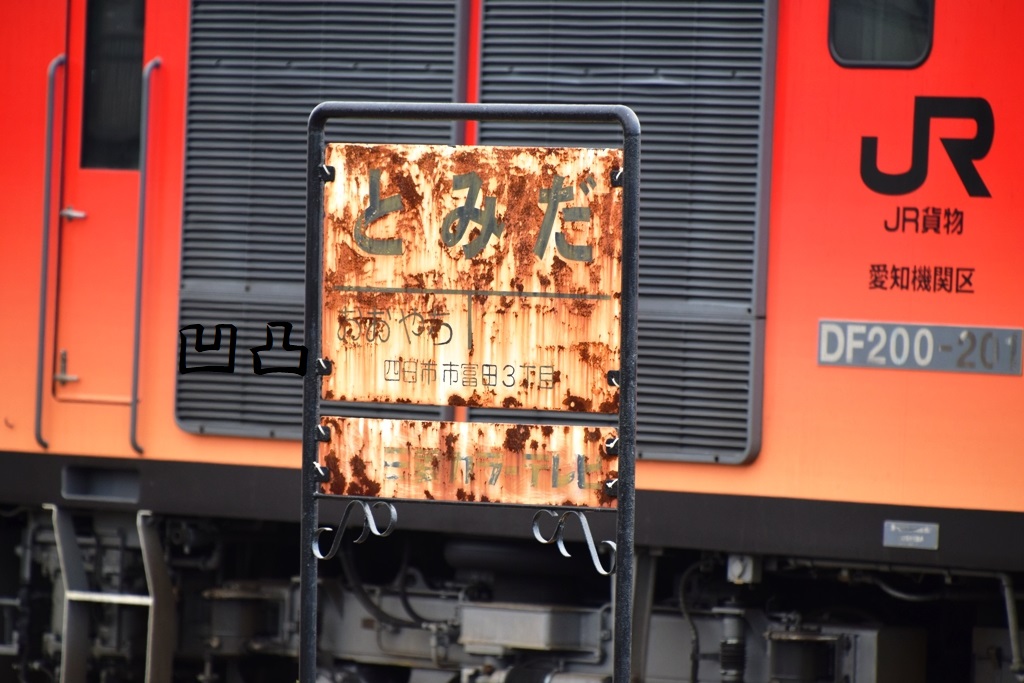 駅名標(後ろにはAi-MeラッピングのDF200-201)