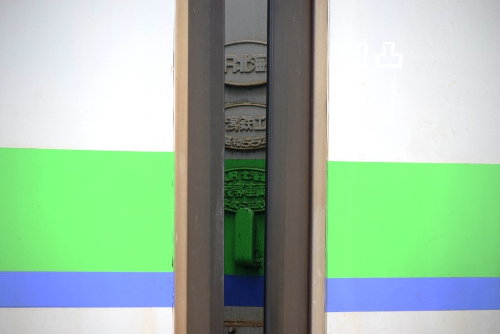 50系オハフ51 35として製造された際の「昭和55年新潟鉄工所」と、平成6年に五稜郭でキハ143に改造された時のものが付いています。