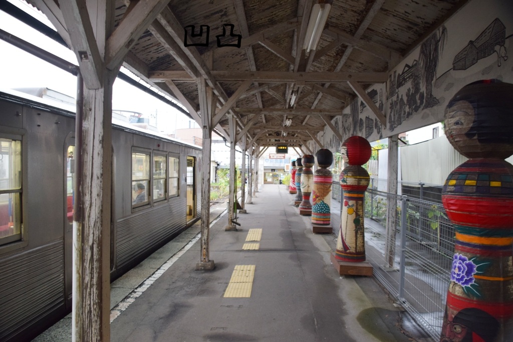 「大鰐線こぎん装飾列車」ラッピングになっています。